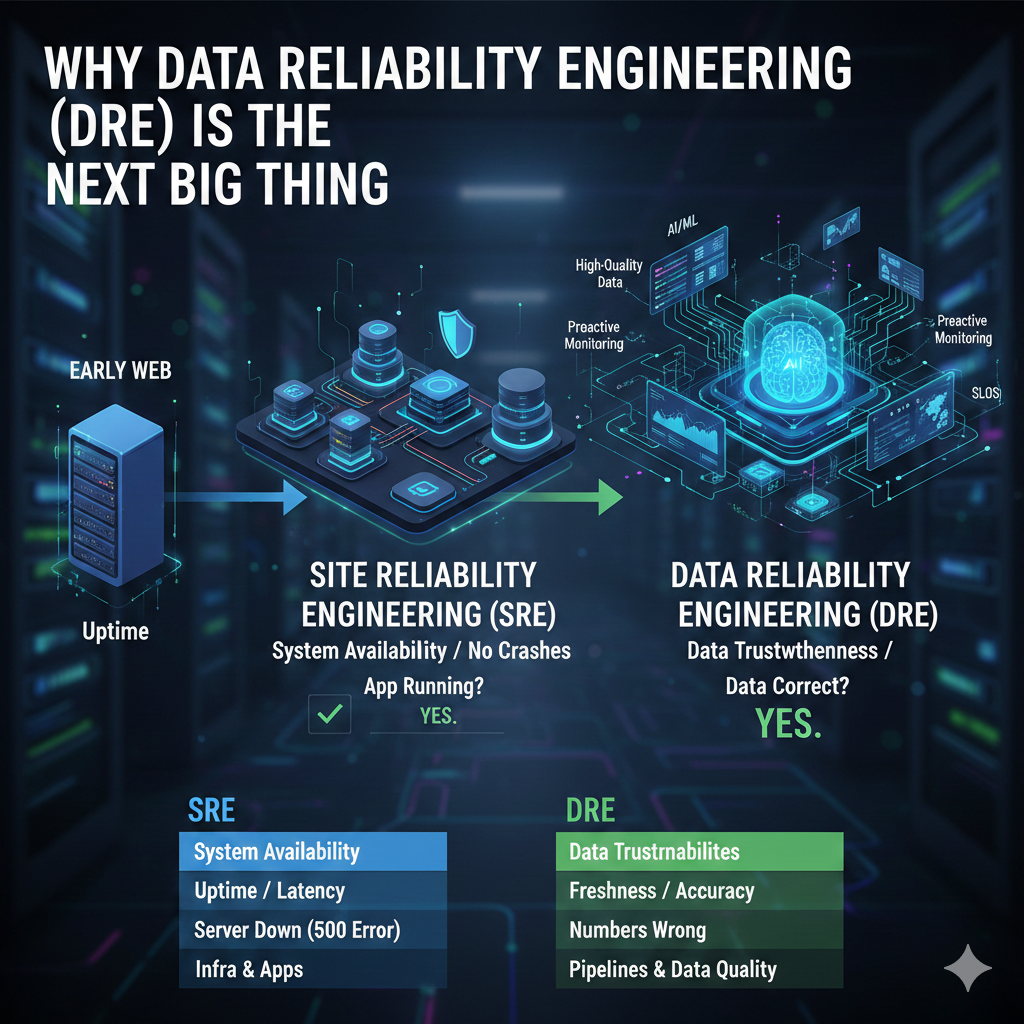 Data has become the backbone of modern decision-making. From executive dashboards to AI-driven predictions, organizations rely heavily on data to guide strategy, operations, and customer engagement. Yet as data ecosystems grow more complex, ensuring that data is accurate, timely, and trustworthy has become increasingly challenging. Traditional data engineering focuses on building pipelines and moving data efficiently—but it does not always guarantee reliability. This gap has given rise to a new discipline: Data Reliability Engineering (DRE).